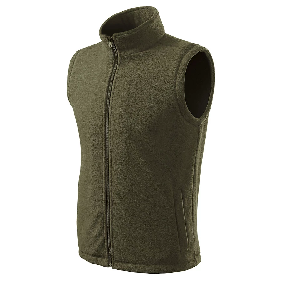 100% poliészterből készült átmeneti polár mellény, magasított nyakkal